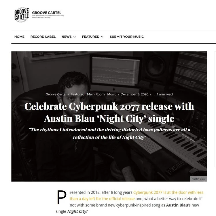 The Groove Cartel wrote a flattering article about my new song Night City. They explained how I released Night City just in time for Cyberpunk 2077 because it was made as an homage to the Cyberpunk genre. I can’t thank them enough for their kind words of myself and Night City.