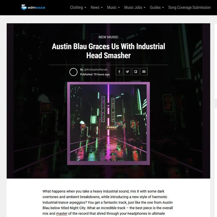EDM Sauce featured Night City and said some wonderful things about the song on their website, which I am very appreciative of!