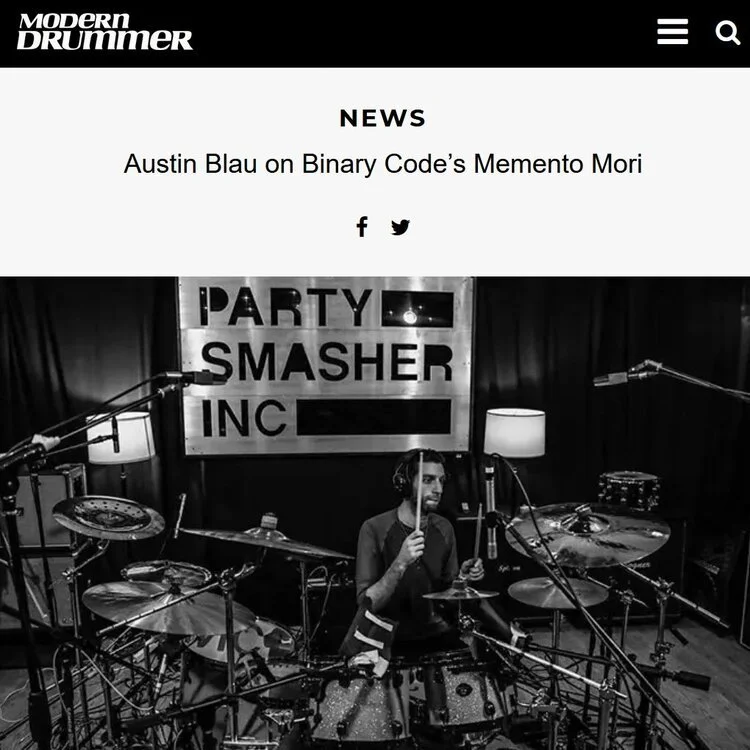 Modern Drummer premiered all 4 drum playthrough videos I made for the Binary Code record Memento Mori I played on. To be featured in Modern Drummer is a dream that I would have never expected when I was a drummer just starting out at the age of 14.