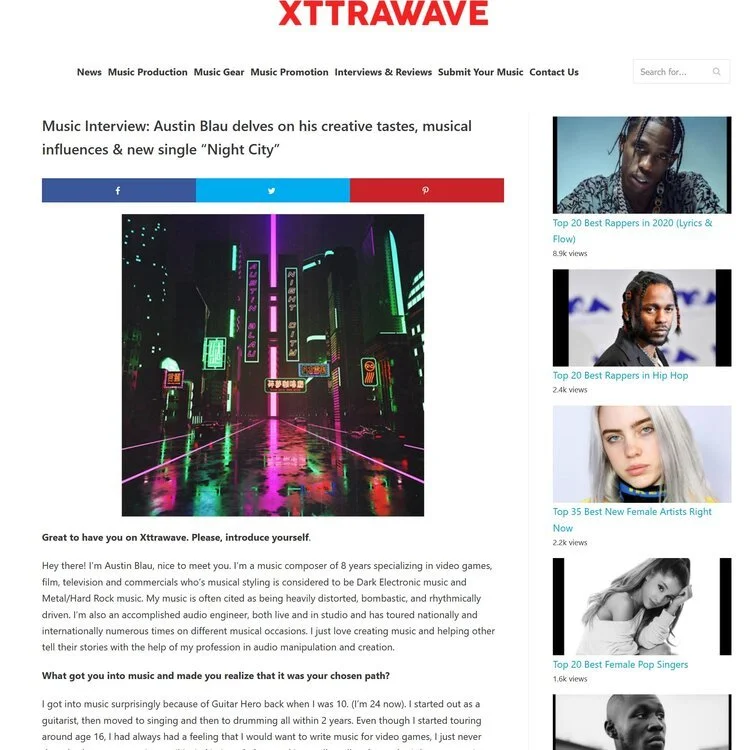 Xttravewave got me on for an interview about Night City and the basics of my music career. As well as to talk about my sound and the inspiration behind Night City.